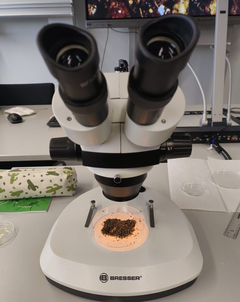 Besonders faszinierend: Unter dem Mikroskop konnten wir beobachten, wie eine australische Marienkäferlarve eine Blattlaus packt und frisst! So bekamen wir ein echtes Gefühl dafür, wie diese kleinen Helfer in der Praxis arbeiten. Auch das Thema „Qualitätskontrolle bei Bestellungen“ kam zur Sprache – schließlich ist es wichtig zu prüfen, ob die gelieferten Nützlinge vital und einsatzbereit sind.