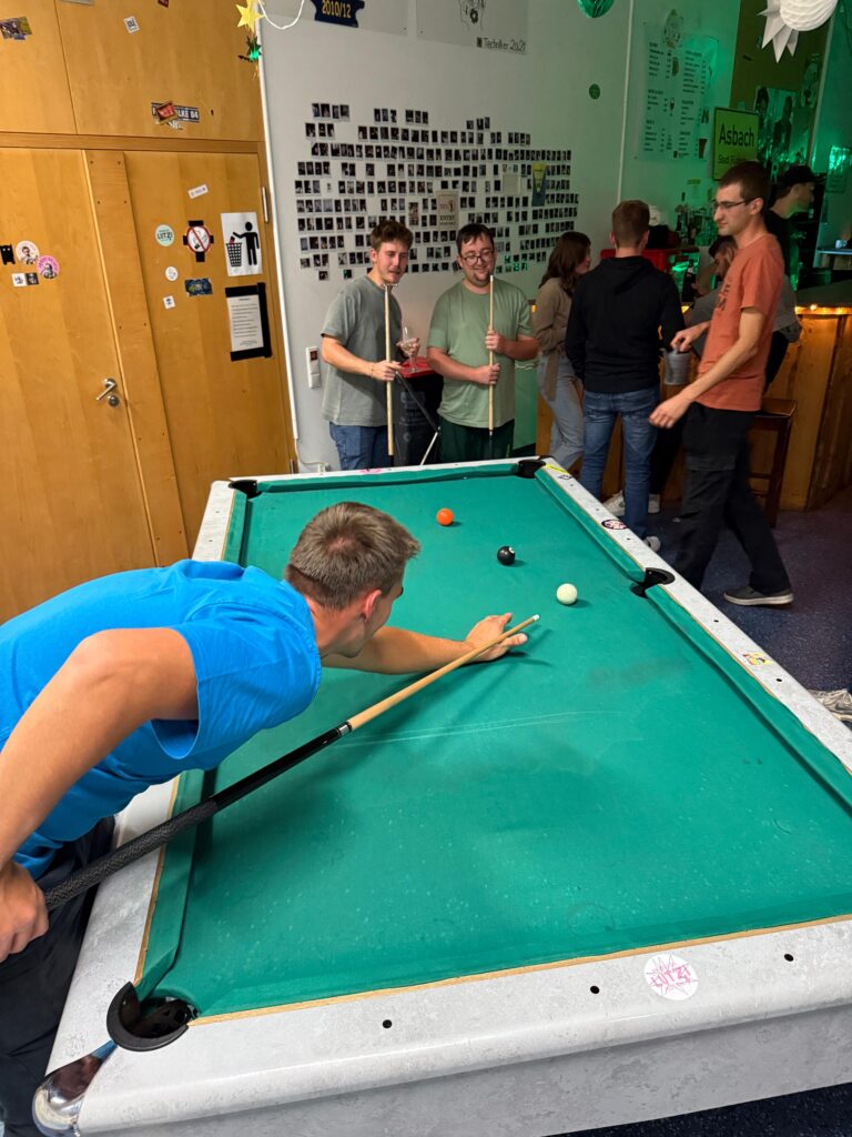 Ein fester Punkt in der Woche sind unsere Barabende am Mittwoch ab 20 Uhr. Wir treffen uns, spielen Billard oder Darts und probieren uns beim Bier Pong aus. Manche schauen nur zu, andere machen direkt mit. Die Stimmung ist entspannt und offen. Gespräche ergeben sich von selbst – oft auch mit Leuten, die man vorher kaum kannte.