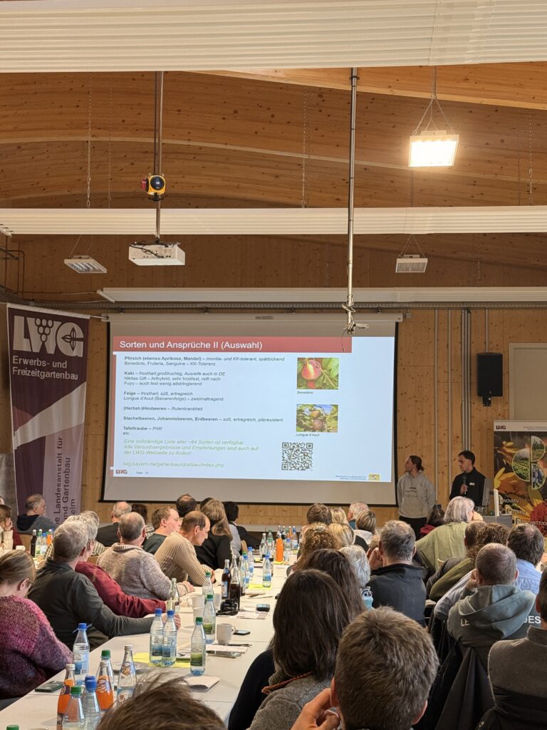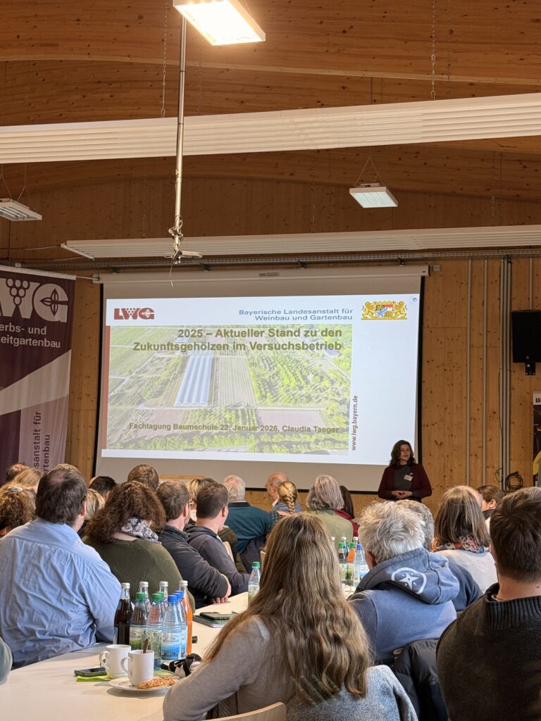 Am Donnerstag, den 22. Januar 2026, fand im Versuchsbetrieb Obstbau und Baumschulen am Stutel in Thüngersheim die Fachtagung Baumschule unter dem Thema „Starke Sortimente“ statt. Von 9:30 Uhr bis 16:00 Uhr bot die Veranstaltung Fachpublikum aus Baumschulen, Beratung, Verwaltung und Wissenschaft ein vielseitiges Programm rund um zukunftsfähige Gehölze, aktuelle Versuchsergebnisse und praxisrelevante Herausforderungen der Branche.